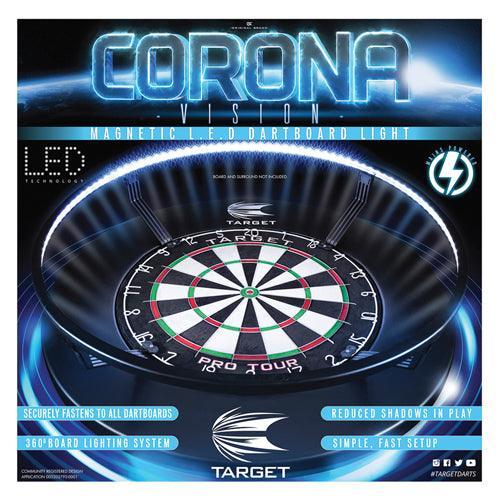 With Magnetic attachment, the Corona vision light system is the new and more convenient way of lighting your dartboard. The feet of the Corona are magnetic, allowing them to attach to the steel ring of the Dartboard.