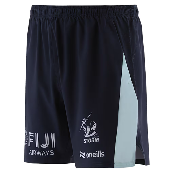 Push your limits in the Melbourne Storm 2026 Training Shorts — the exact same as worn by Storm players. Crafted from lightweight, four-way stretch material, these shorts provide ultimate freedom of movement. The custom embossed waistband ensures a snug fit, while moisture-wicking technology keeps you cool during high-intensity training. With concealed zip pockets and a modern, sublimated finish, they blend functionality with team pride. Perfect for gym sessions, footy practice, or Melbourne’s warmer days, these shorts keep you performing and looking your best