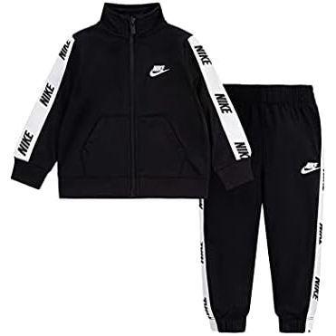 Get this dashing Boy's Black.White Nike Tricot Set to keep your little one warm and comfortable. Crafted with a tricot construction, the midnight blue hoodie and matching tracksuit pants offer lightweight warmth that's essential when active. The tracksuit top has a full zip for easy on-off, while ribbed cuffs and waistband ensure a snug fit. The iconic Nike swoosh logo on each garment completes the sporty look.