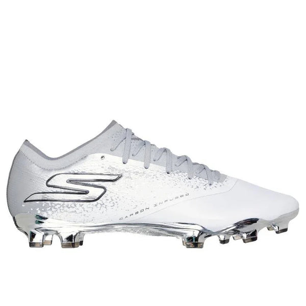 Achieve unmatched comfort and performance on the pitch with Skechers Razor - 1.5 ELITE FG™. This lightweight, speed-focused football boot features highly responsive HYPER BURST PRO™ cushioning with a lace-up Performance FitKnit™ engineered upper and a carbon-infused plate for stability and next level energy return.